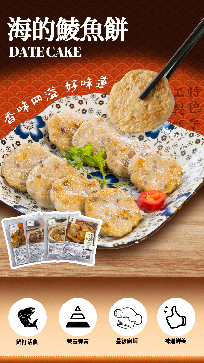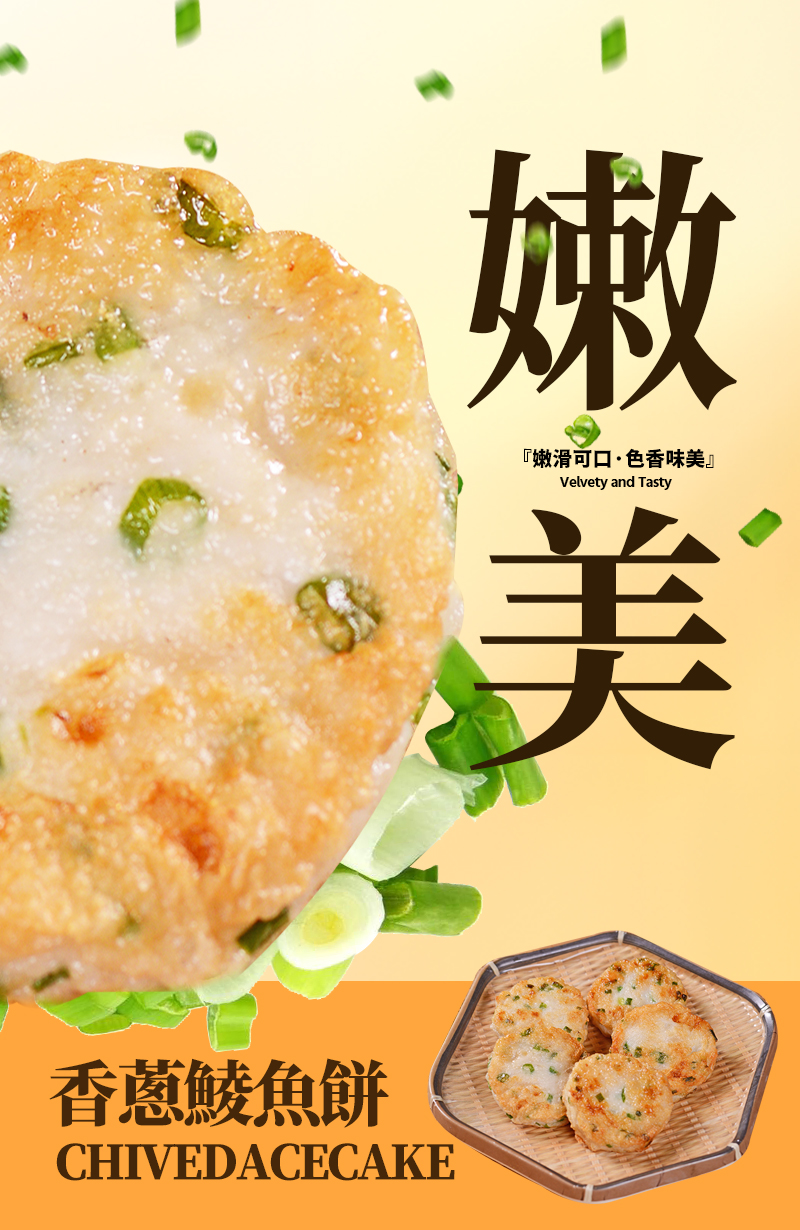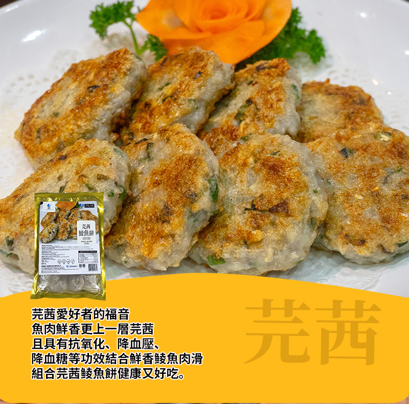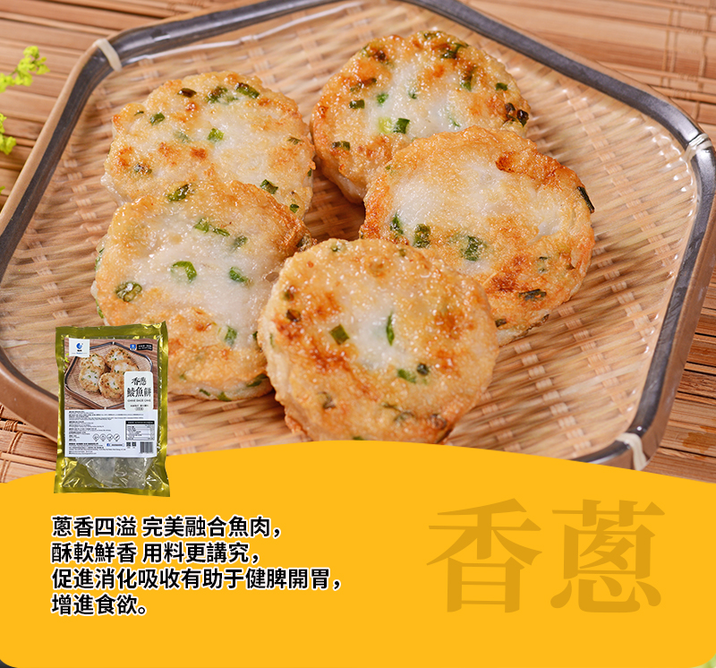 消費券必試食品 香蔥鯪魚餅300g(非即食) 精選優質新鮮土鯪魚,傳統手工工藝保持原有鮮味嫩滑; 蔥香美味,口感Q彈。