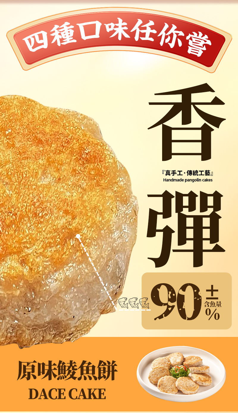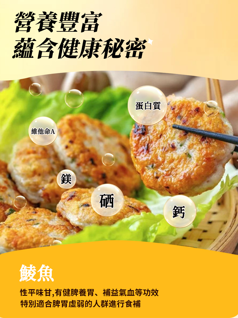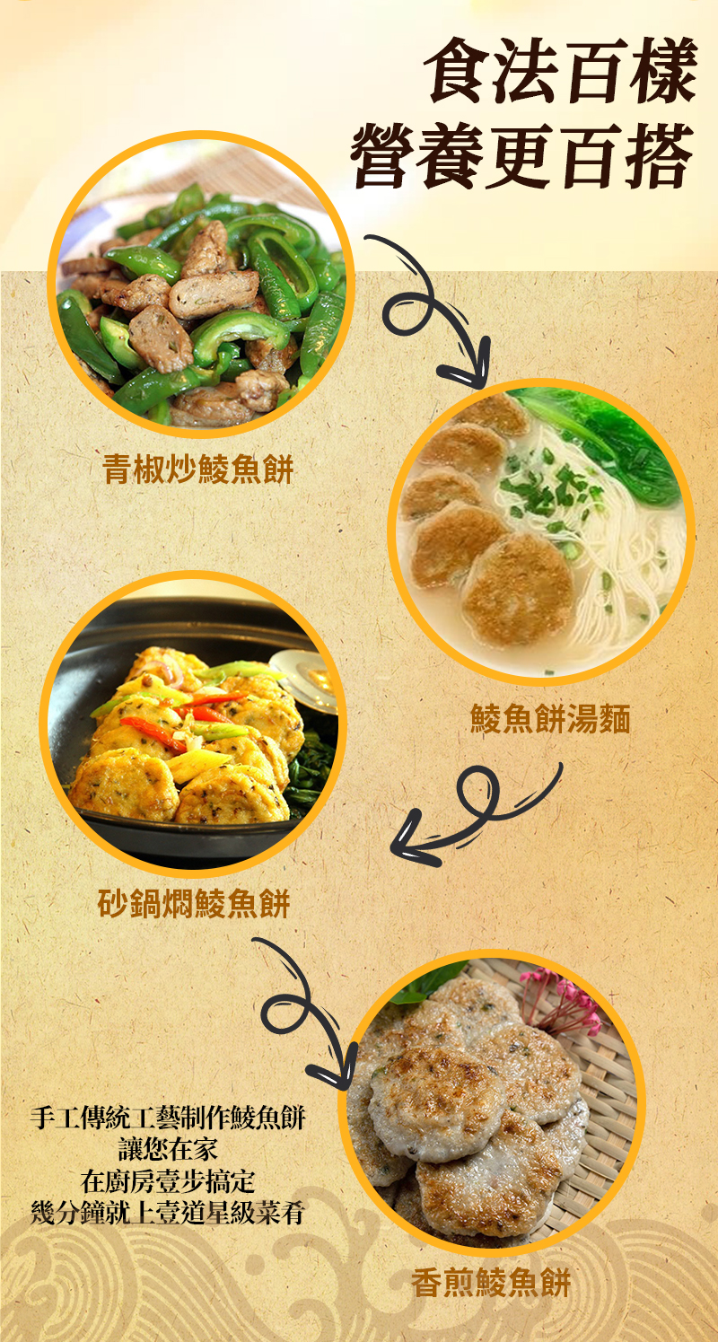 消費券必試食品 香蔥鯪魚餅300g(非即食) 精選優質新鮮土鯪魚,傳統手工工藝保持原有鮮味嫩滑; 蔥香美味,口感Q彈。